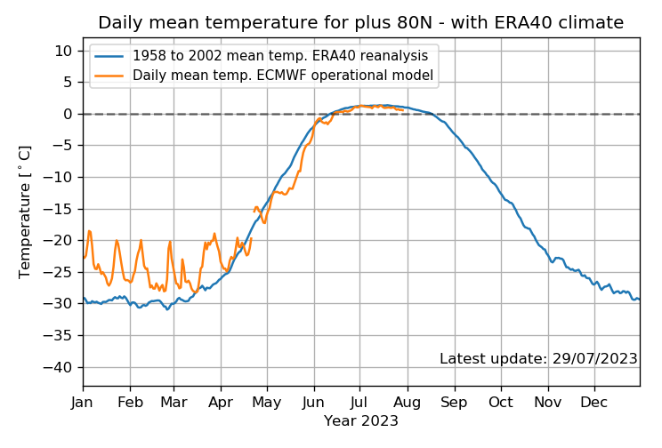 It seems pretty normal to me, no runaway ice melt the last few years. I fact this year the Arctic temperature above the 80th latitude has been at or below normal since late April. How about the ice on Greenland?