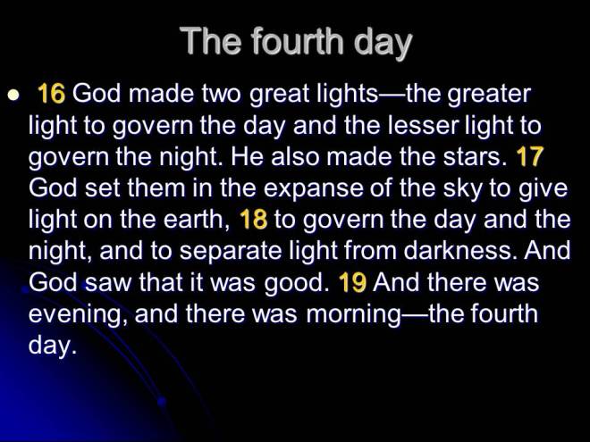 The picture above shows the friendly earth we are living in today. On the second “day” of creation situation was quite different. The sun was not fully created yet, and the earth was still in its chaotic state. All God did was to prepare the ecosystem. The earth was still cooling down from creation, and water evaporated and formed a cloud that covered the whole earth. This is why God did NOT say “it was good” on the second day, it was just the preparation.