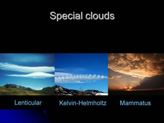 Clouds are God’s way of stabilizing temperatures. If there were no clouds, temperatures in the tropics would be as high as 140 degrees F. There are many different cloud types: