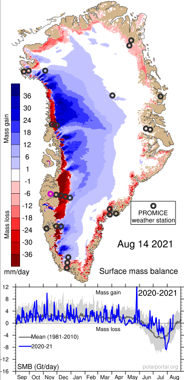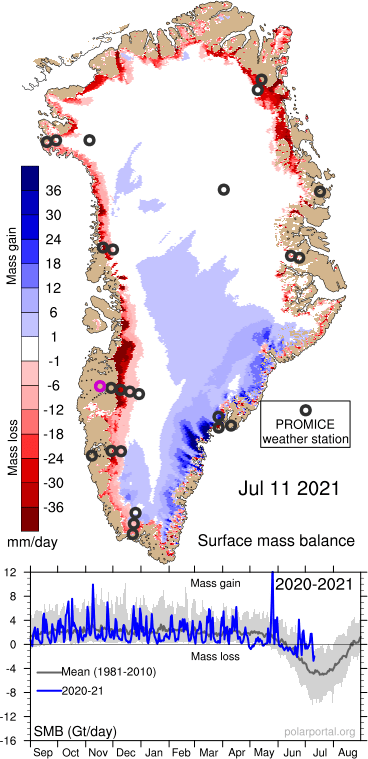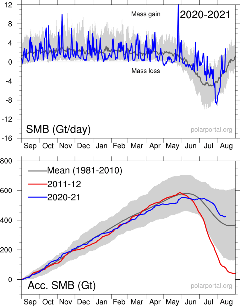 The ice-pack on Greenland has been melting much less than normal during the melting season