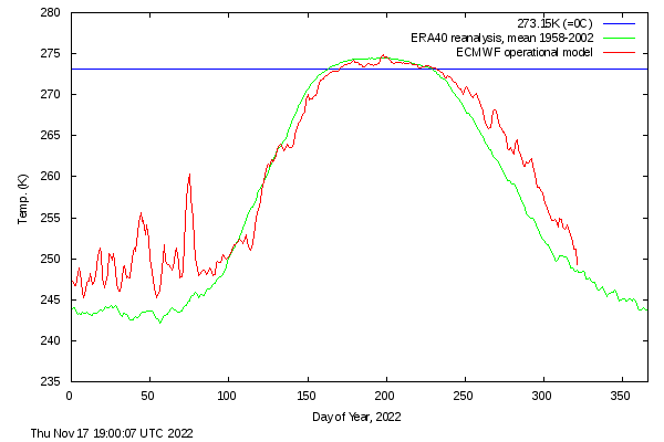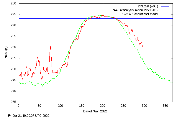 The overall worldwide temperature is increasing, but not at the rate the climate models suggest. The important thing is, where are the temperature increases? The South Pole winter temperatures are decreasing 2C per century, but summer temperatures are increasing ever so slightly. In the Arctic the situation is reversed. The winter temperatures have risen between 3C and 7C and vary widely from year to year, but the summer temperatures are slowly decreasing. The current temperature chart for the Arctic above 80 degrees latitude tells the story: