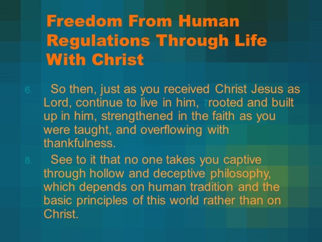 Colossians 2. It is all about Christ, not philosophy but Christ, not legalism but Christ.