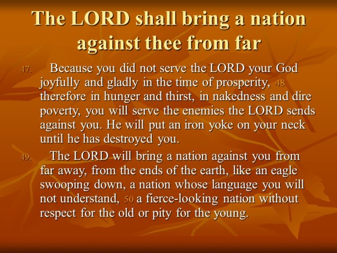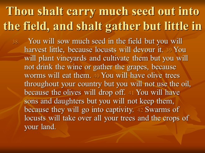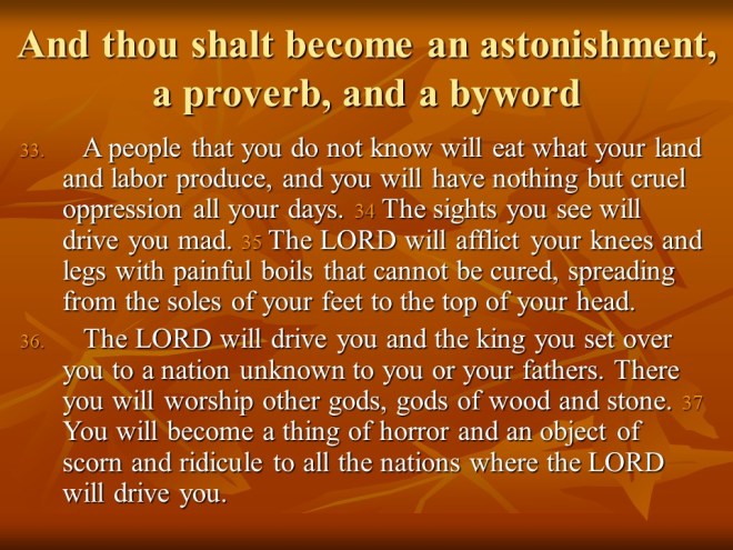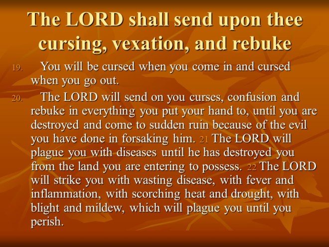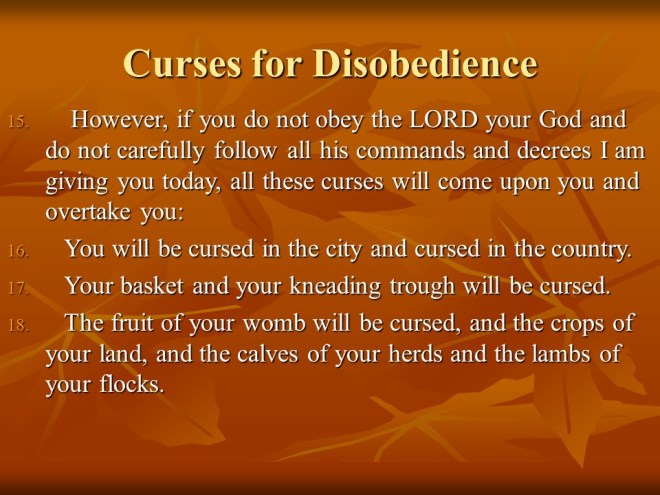 Deuteronomy 28. The LORD through Moses specified many blessings for obedience and even more curses for disobedience.