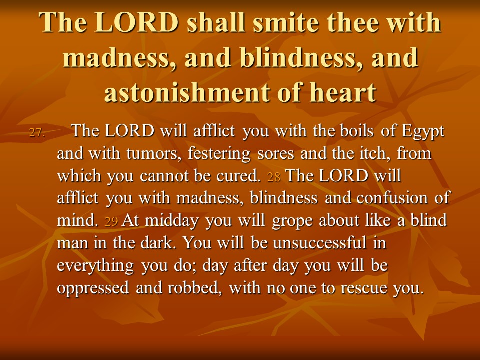 Deuteronomy 28. The LORD through Moses specified many blessings for obedience and even more curses for disobedience.