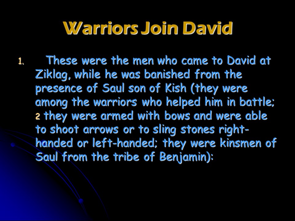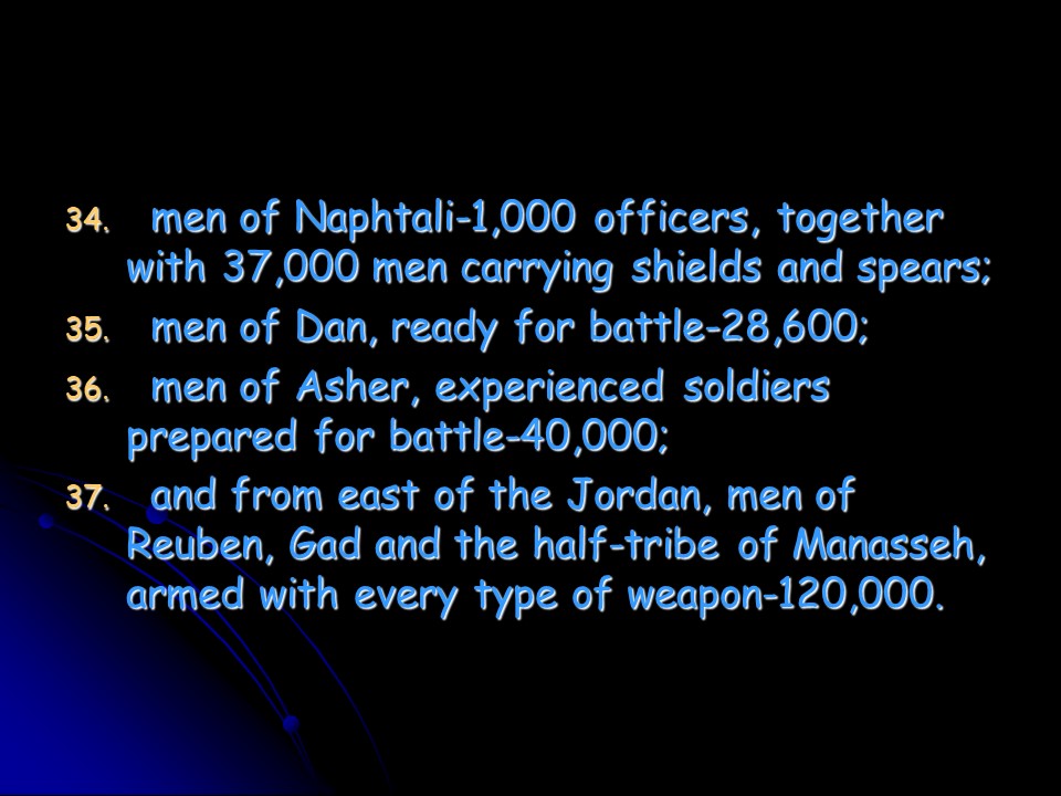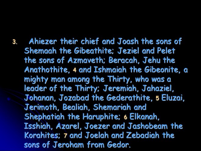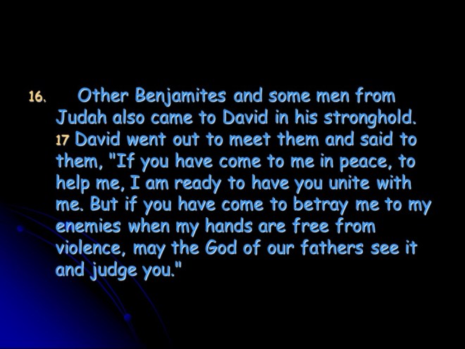1 Chronicles 12, David’s Army grew and grew, and in Hebron David’s Army was numbered. With so many volunteers to join the army there was joy in Israel.