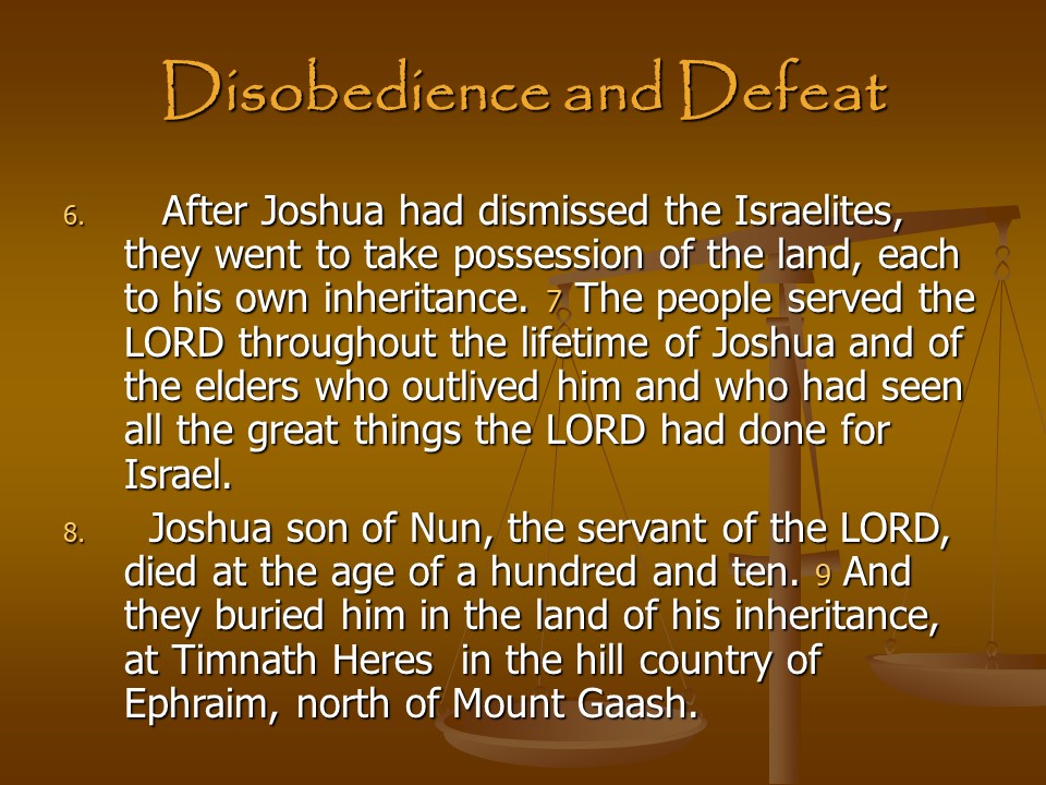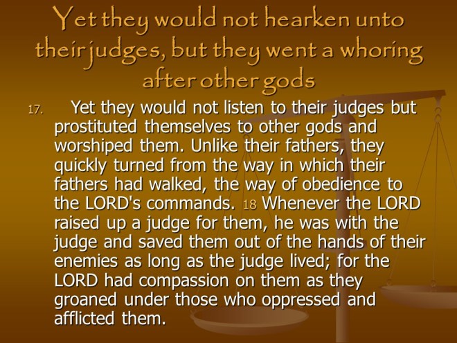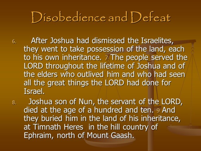 In Judges 2 God decried Israel’s disobedience, the author chronicled the death of Joshua, and recorded Israel’s unfaithfulness and sin.