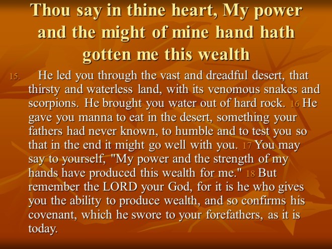 Deuteronomy 8. Remember the LORD your God, but if not you too will be destroyed.