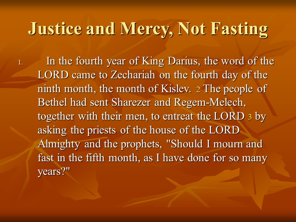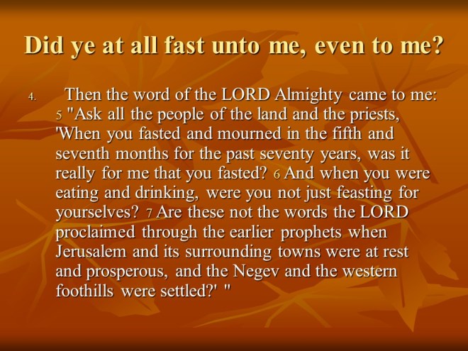 Zechariah 7. Obedience is better than fasting and disobedience ends with captivity.