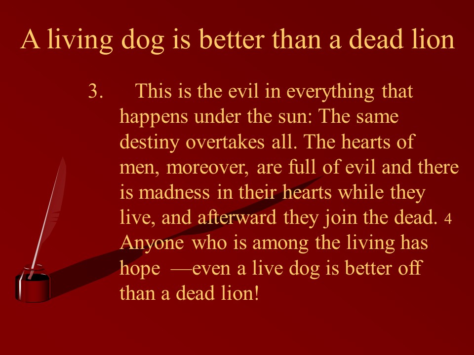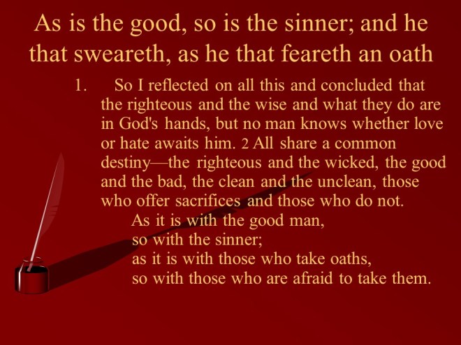 Ecclesiastes 9. Death comes to all, and wisdom is better than folly.