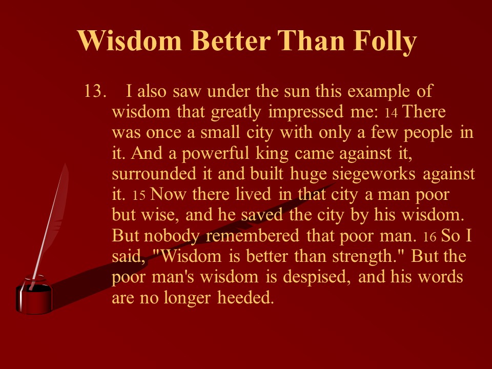 Ecclesiastes 10. Yes indeed, wisdom is better than folly.