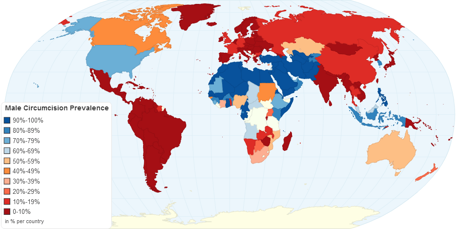 here is a map of the prevalence of male circumcision: