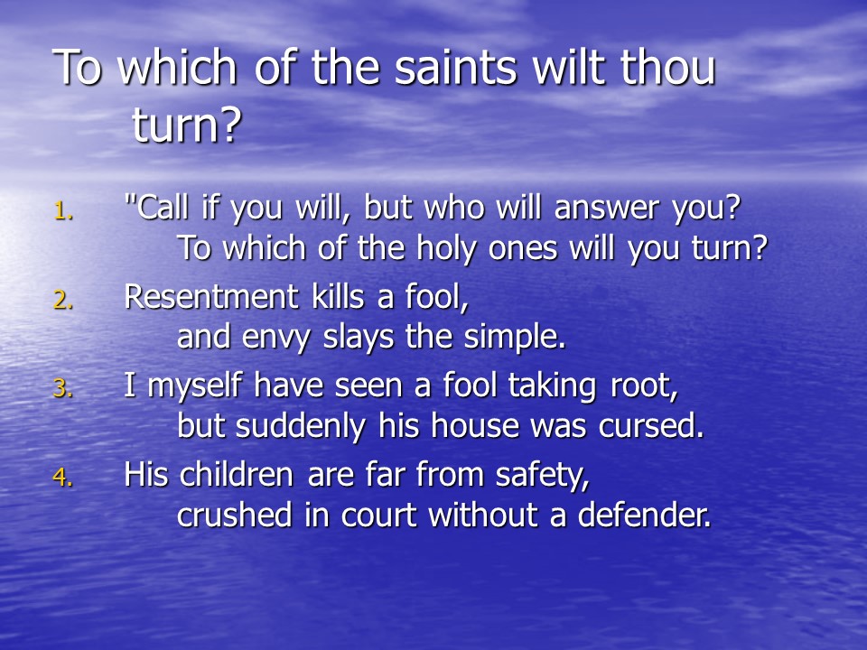 Job 5. Job has sinned, and for that Job is chastened by God.