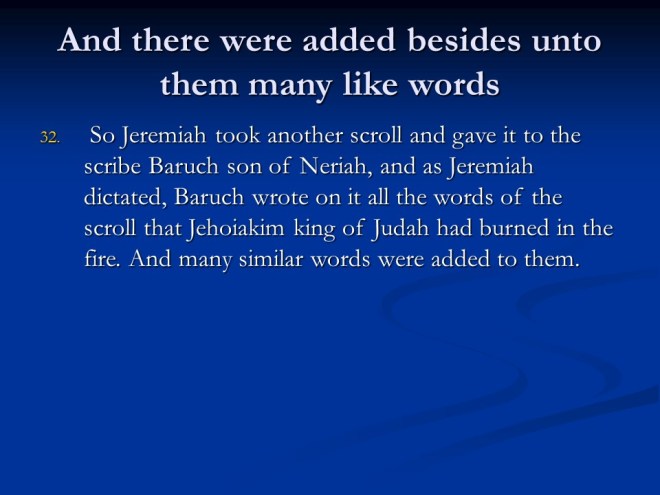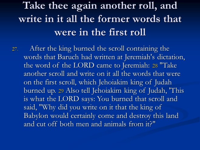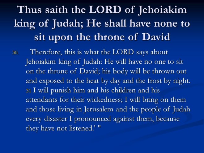 Jeremiah 36, Jehoiakim burns Jeremiah’s Scroll, end of David’s Line? Jeremiah 36, Jehoiakim burns Jeremiah’s Scroll, end of David’s Line?