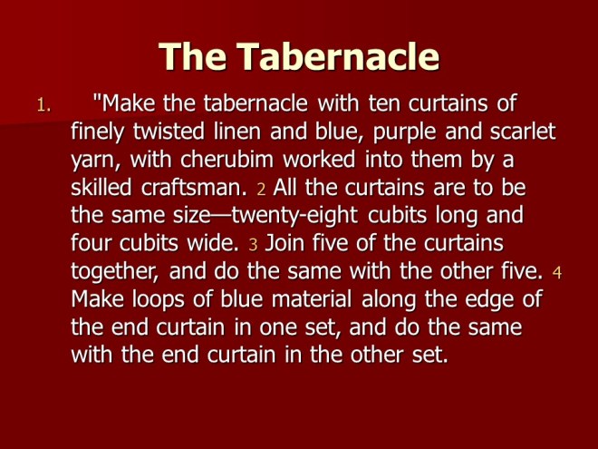 Exodus 26. God described to Moses how the tabernacle was to be built.