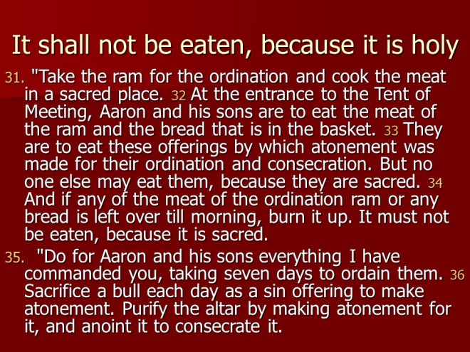 Exodus 29 specifies how the consecration of priests was to be performed.