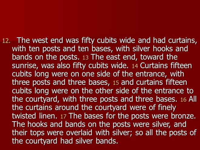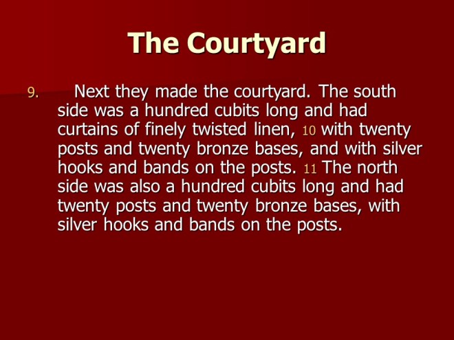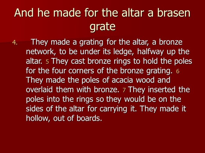 Exodus 38 records of how the altar of burnt offerings and the basin for washing was made, continuing telling about the courtyard around the tabernacle and all the materials used.