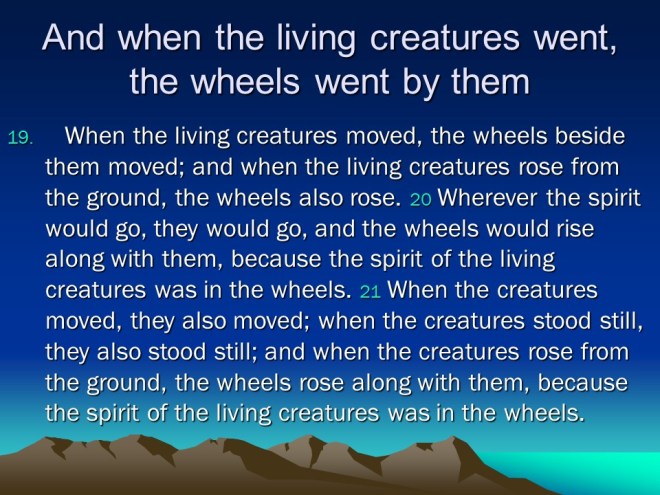 Ezekiel 1 tells of Ezekiel’s vision from God. As a 23 year old I read of the Swiss author Erich von Däneken and his wild hypotheses about aliens visiting us and mentioned the wheel in a wheel from Ezekiel’s vision. And this was before I believed! Read the chapter carefully and see what you think. Däneken was speculating widely, but what God showed Ezekiel will challenge your imagination!