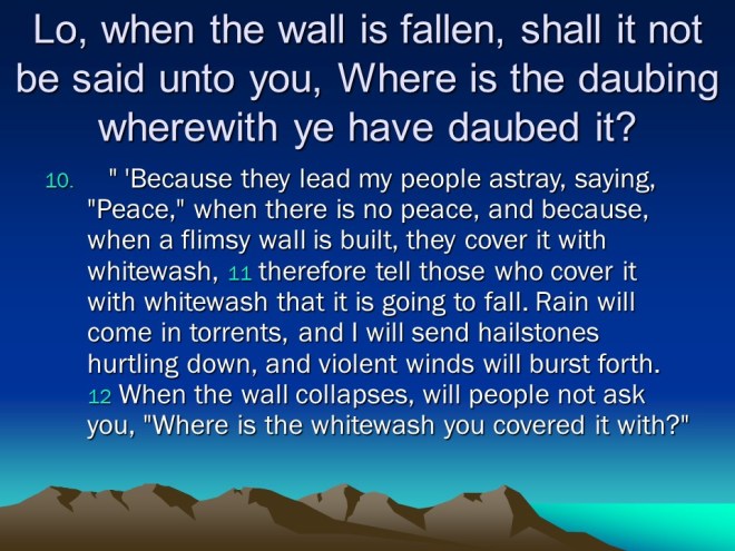 Ezekiel 12. Things were getting worse, people would see visions of peace where there is no peace, Judah’s future captivity is portrayed and the judgment is not to be postponed.
