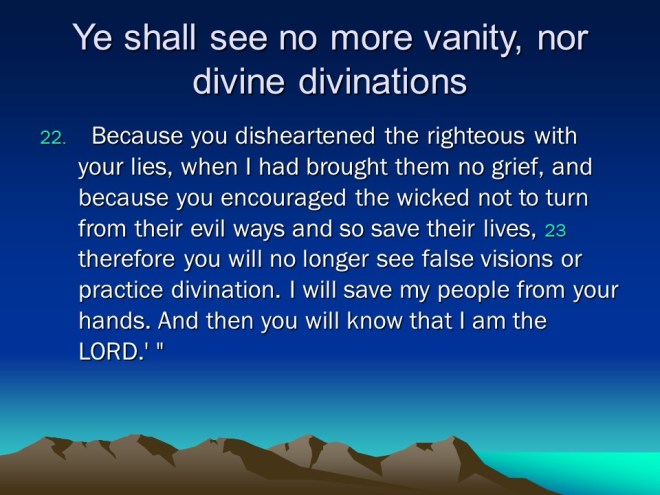 Ezekiel 12. Things were getting worse, people would see visions of peace where there was no peace, Judah’s future captivity is portrayed and the judgment is not to be postponed.