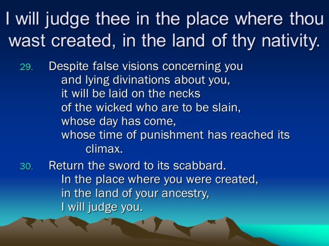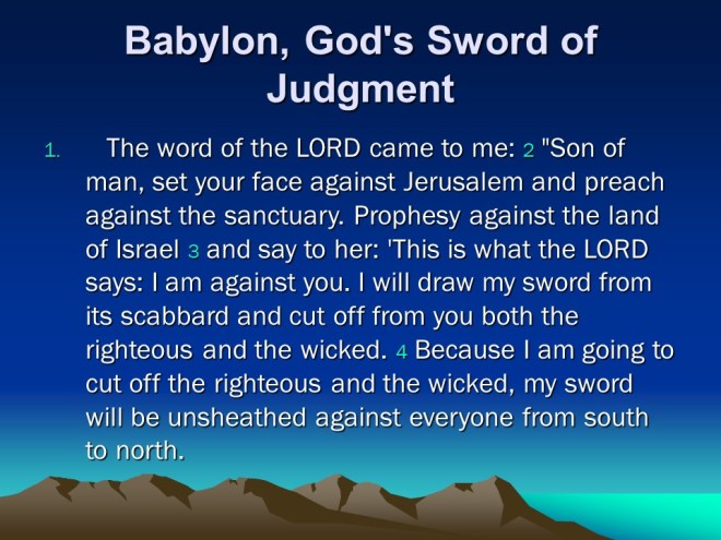 Ezekiel 21. Babylon was chosen as the sword of God for judgement, a sword against Judah and the Ammonites.
