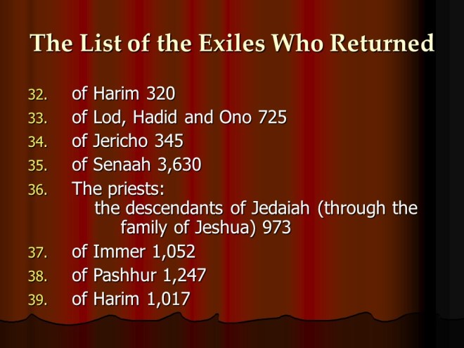 Ezra 1 begins with the end of the Babylonian captivity and Cyrus decree to rebuild the Temple. The people prepared to return to Jerusalem.