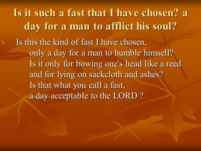 Let us see what scripture says about the subject. In Zechariah 7:4-5 the prophet wrote: “ Then the word of the Lord of hosts came to me, saying, “Say to all the people of the land, and to the priests: ‘When you fasted and mourned in the fifth and seventh months during those seventy years, did you really fast for Me—for Me?