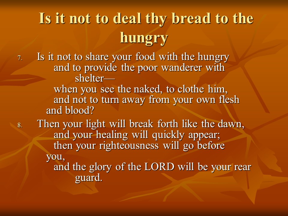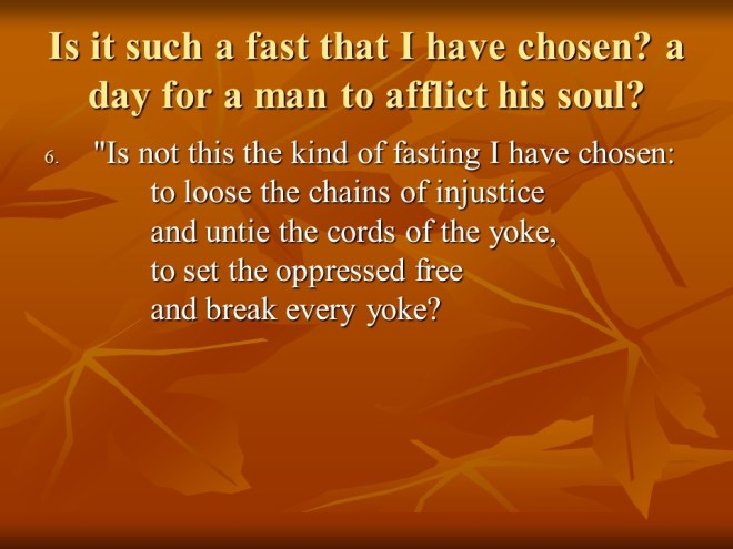 So, what is a true fast? In Isaiah 58:3-6 the prophet writes:
