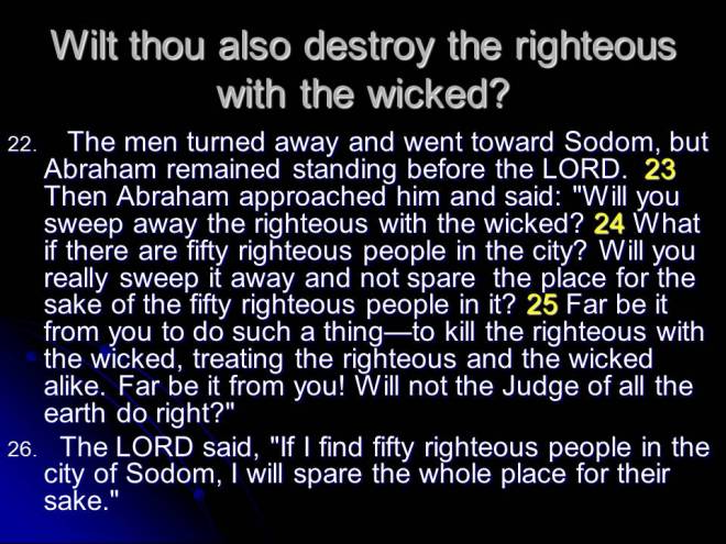 Which brings us to Genesis 18 with Abraham still waiting for his promised offspring. He was visited by three angels that promised him he will have a son within a year. Sarah heard it and found it laughable, but God confirmed this promise, and was also proclaiming the destruction of Sodom and Gomorrah. Abraham tried to bargain with God at no avail.