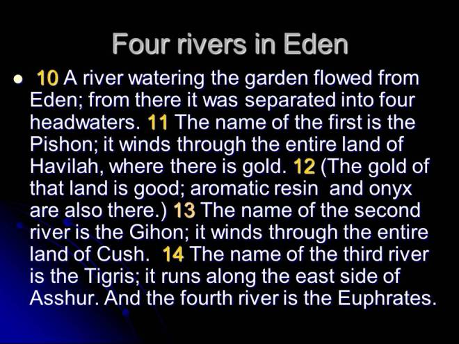 And they place importance on Pishon and Gihon, being the Blue Nile and Atbarah river
