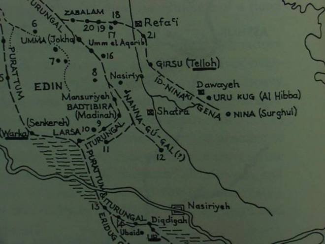 And indeed, some early map puts the garden downstream of Babylon, a vast marshy land with meandering rivers between Euphrates and Tigris. On the map below the lower river is Euphrates.