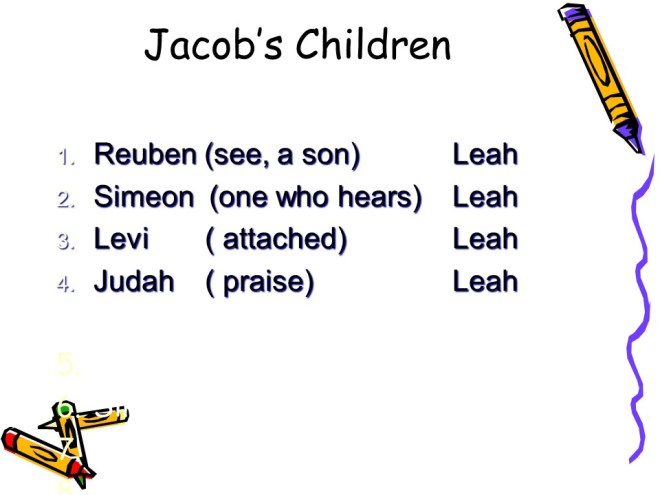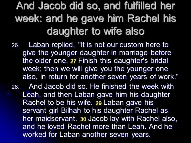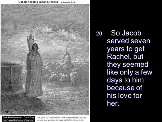In Genesis 29, Jacob arrived in Paddan Aram, fell in love with Rachel, worked seven years to be allowed to marry her, but her father Laban tricked Jacob, so he got Leah instead. Then he worked another “seven years for Rachel”. But it was Leah that gave him his first four children, Reuben, Simeon, Levi and Judah.