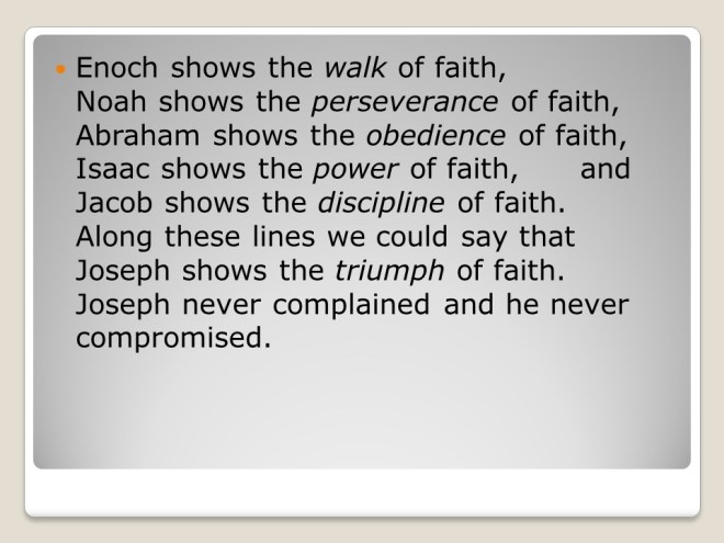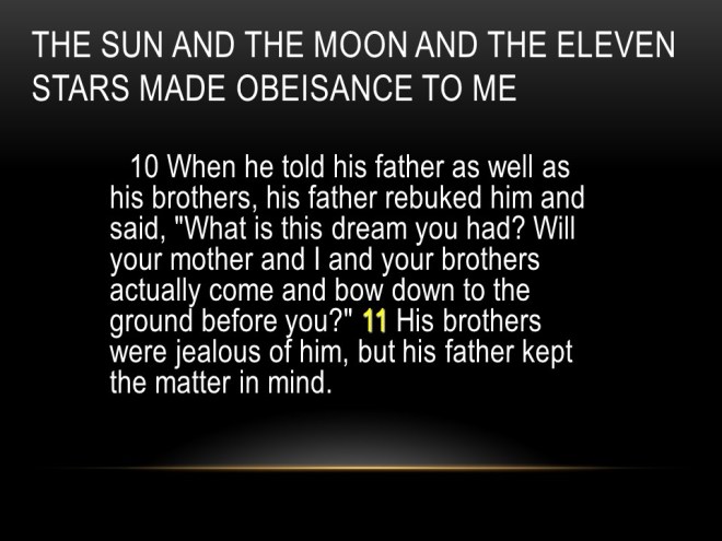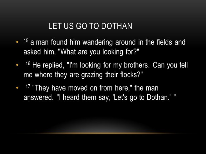 Genesis 37 tells of Joseph’s dreams, outrageous as they were they made his brothers jealous, so they sold him into slavery to Potiphar in Egypt.