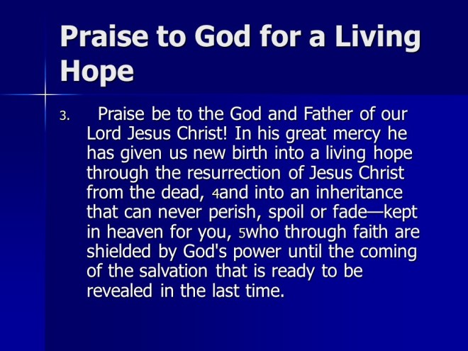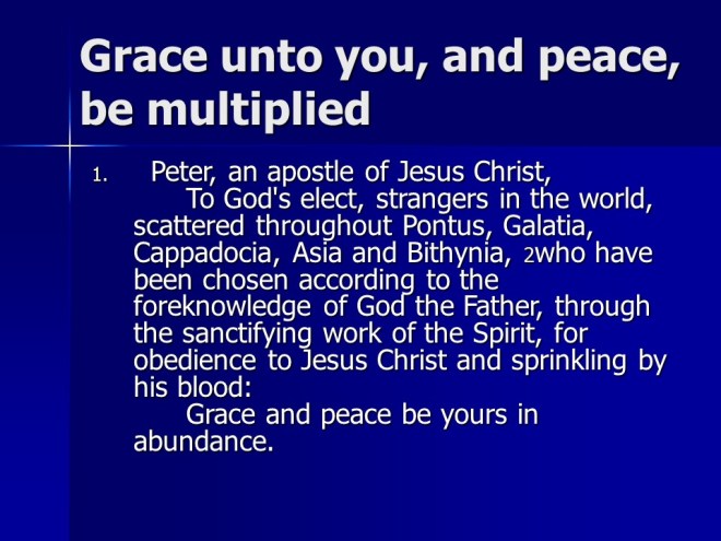 1 Peter 1:1-12. The apostle Paul was greeting his fellow elect pilgrims scattered among the nations and reminded them of their heavenly inheritance, as they were living before God their Father.