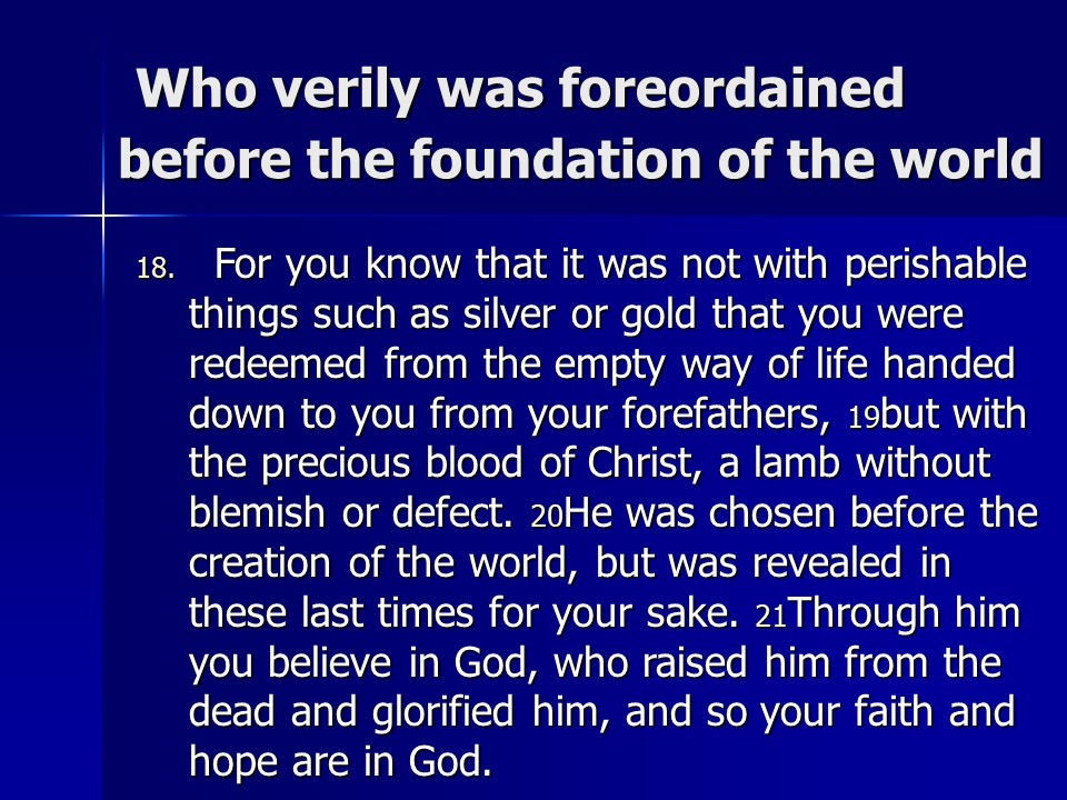 1 Peter 1:1-12. The apostle Paul was greeting his fellow elect pilgrims scattered among the nations and reminded them of their heavenly inheritance, as they were living before God their Father.