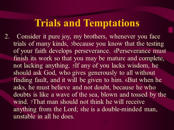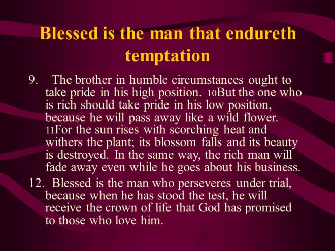 James 1:1-18 is more than any letter a bridge between the Old and the New Testament. It starts out with a greeting to the twelve tribes scattered abroad. It encourages to meet trials with joy, demands the rich to do good and love God even under trials.