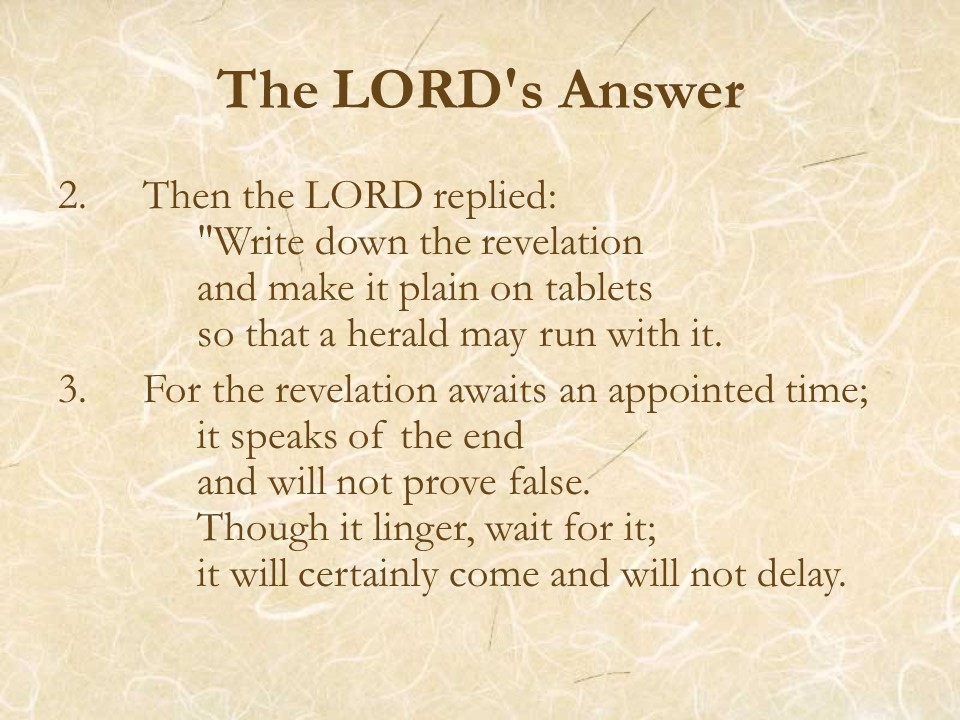 Habakkuk 1 begins with the prophet’s first complaint and the LORD’s reply. After that the prophet poured out his second complaint.