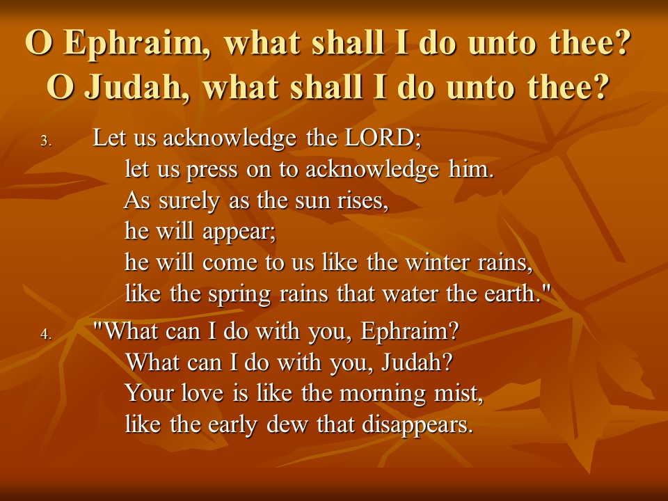 Hosea6. God called Ephraim and Judah to repentance, for He required mercy; not sacrifice.