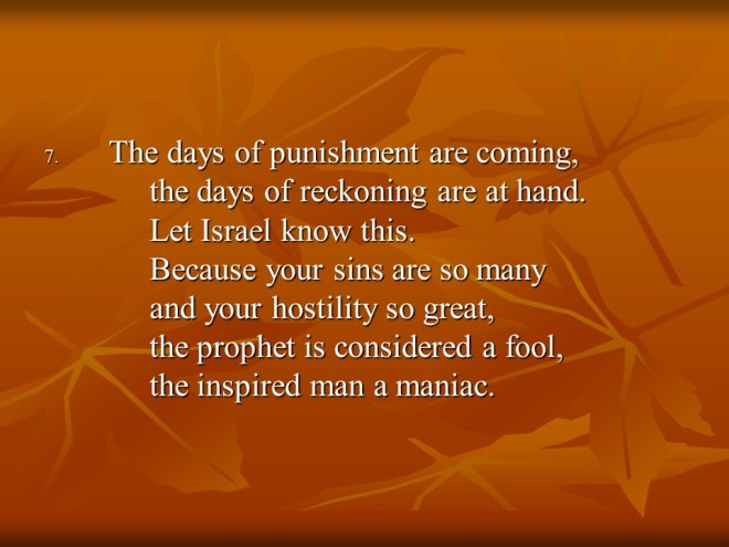 Hosea 9. The prophesy said Israel will be judged because of its sin.