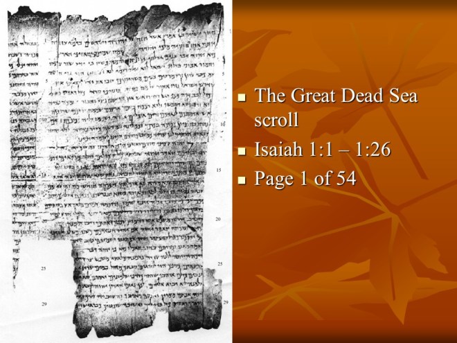 Then in 1947 A.D. a complete scroll of Isaiah was found in the cave of Qumran, and it gives the timeline of its writing as around 700 B.C.