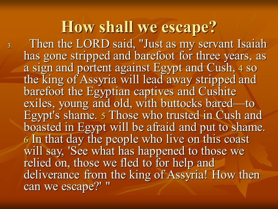 Isaiah 20 is a short chapter. It contains a prophecy against Egypt and Cush.
