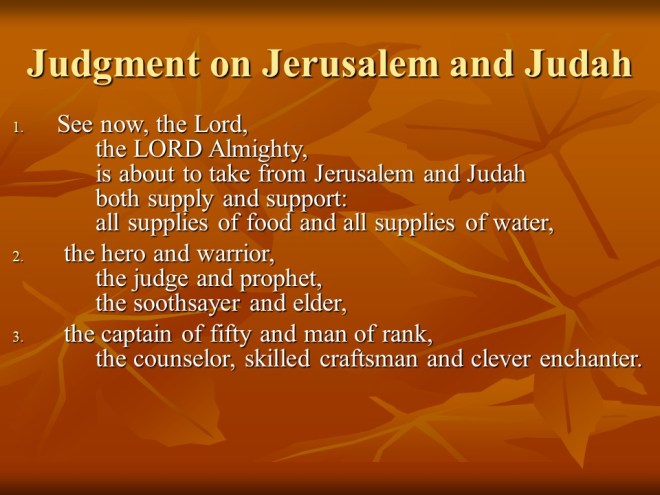 In Isaiah 3 the prophet proclaimed judgment on Jerusalem and Judah.