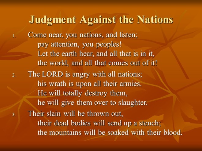 Isaiah 34. A vivid description of the judgment against the nations. There are nine mentions of unicorns in the King James Bible. This is the final mention.