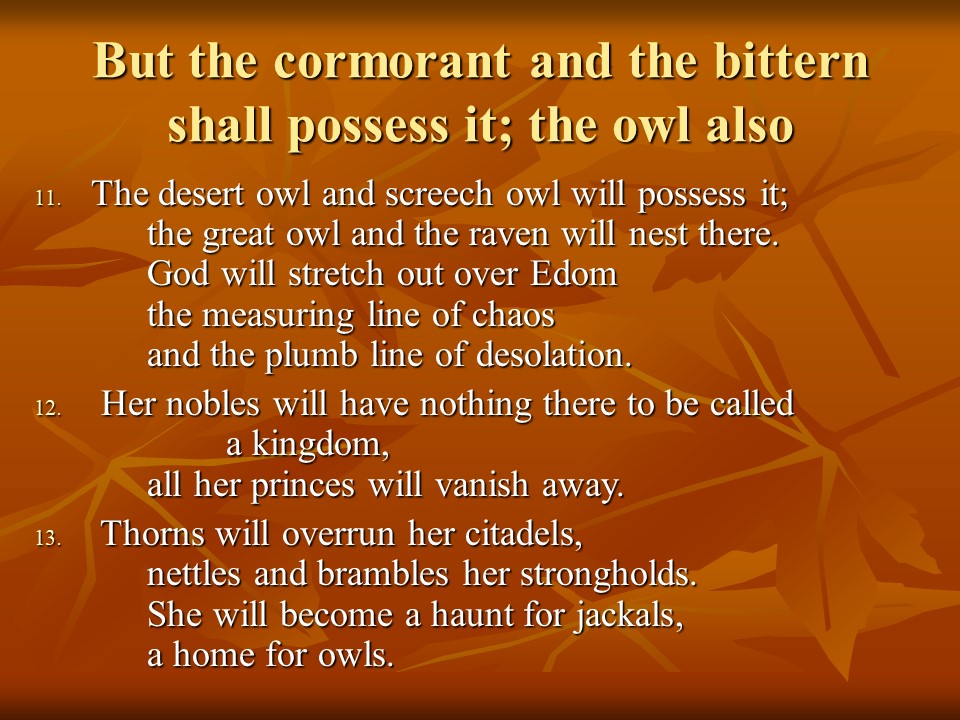 Isaiah 34. A vivid description of the judgment against the nations. There are nine mentions of unicorns in the King James Bible. This is the final mention.