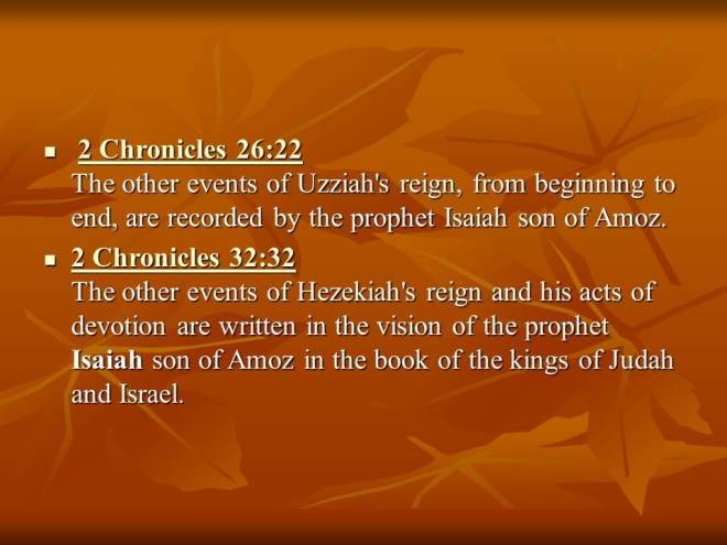 Isaiah 36. Isaiah broke away from prophecy and gave a historical rendition, duplicated in second Kings. This is not plagiarism, Isaiah was the scribe during Hezekiah’s reign.