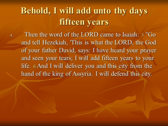 Isaiah 38 describes Hezekiah’s illness and how the LORD added 15 years to his life.