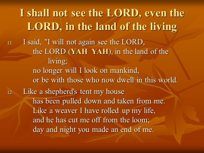 Isaiah 37. Jerusalem’s deliverance is foretold, Hezekiah’s prayer and the word of the LORD concerning Sennacherib is recorded, followed by Hezekiah’s final fall.