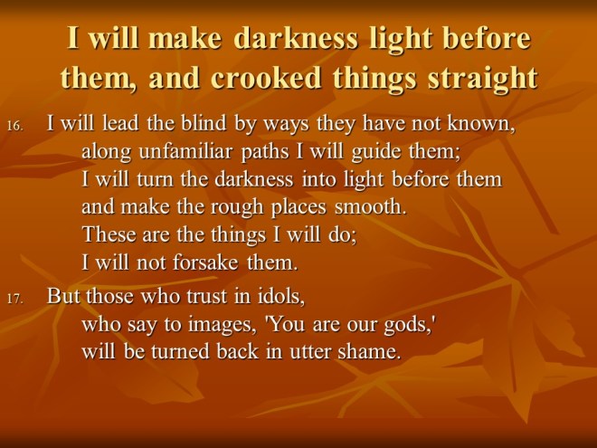 Isaiah 41 waxes eloquent about the helper of Israel. “How firm a foundation” it is to stand with God. Compare that to the futility of idols!