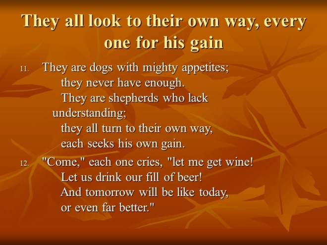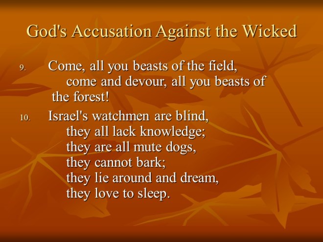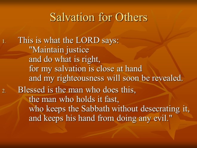 Isaiah 56. Salvation will be open to all. In Yad Vashem, the Holocaust memorial will be remembered “Even unto them will I give in mine house and within my walls a place and a name better than of sons and of daughters: I will give them an everlasting name, that shall not be cut off.” Yet, Israel still have wicked leaders.