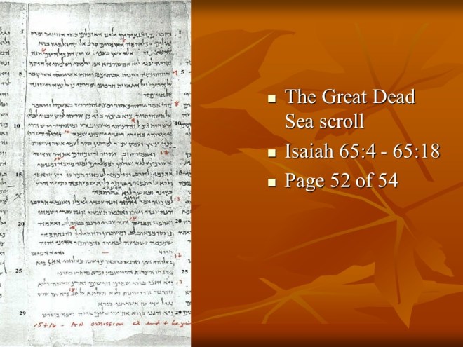 Isaiah 66 speaks of judgement and hope, and true and false worship. Yet, the LORD will vindicate Zion; “Behold, I will extend peace to her like a river, and the glory of the Gentiles like a flowing stream“. Finally, God via Isaiah wraps up the scroll with a description of the Day of the LORD and its sobering aftermath.