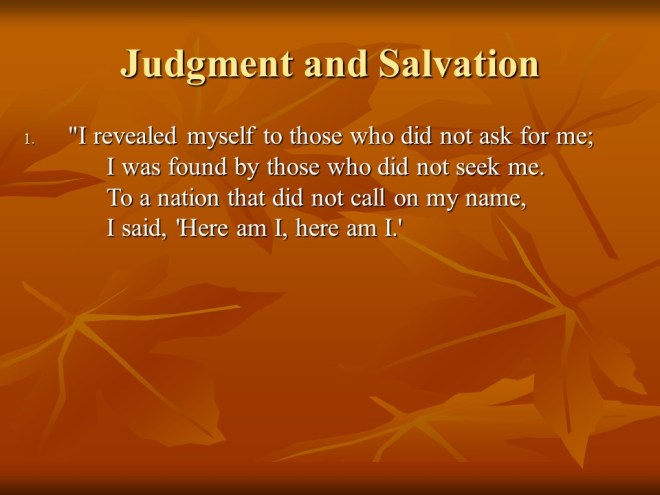 Isaiah 65 is rich. It tells of judgment and salvation, the new creation and the new Jerusalem.